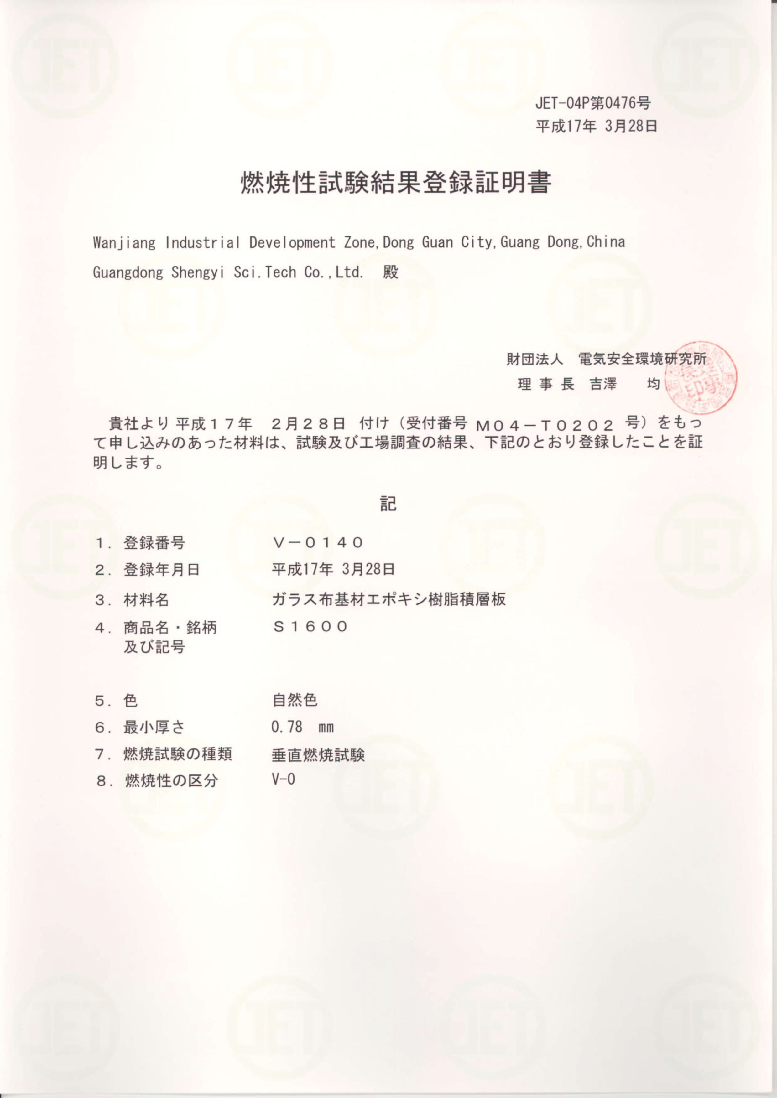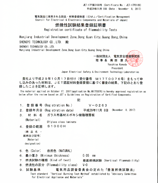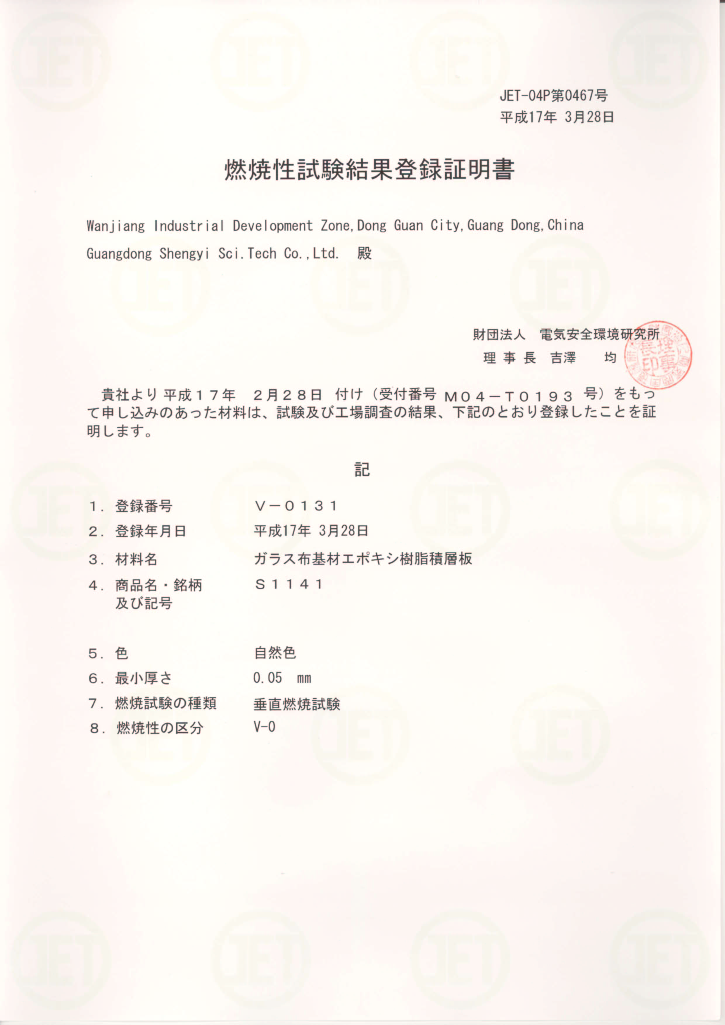 • S1141 JET Certificate